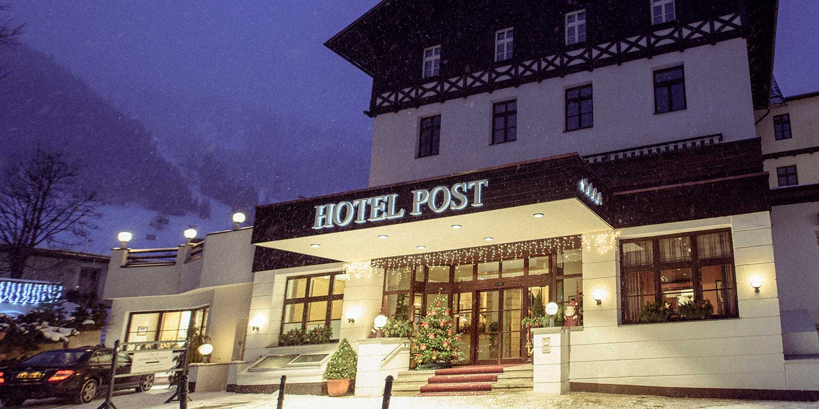 Once a small inn called the ‘Zur alten Post’, its owner was also the postmaster, hence the name it takes today. Built in 1896, it was transformed into a ‘Sporthotel’ in 1928 and is now run by the Alber family who have created a very popular hotel with its own variety of bars and the recent addition of a pool. The food is good and it has an excellent wine cellar.