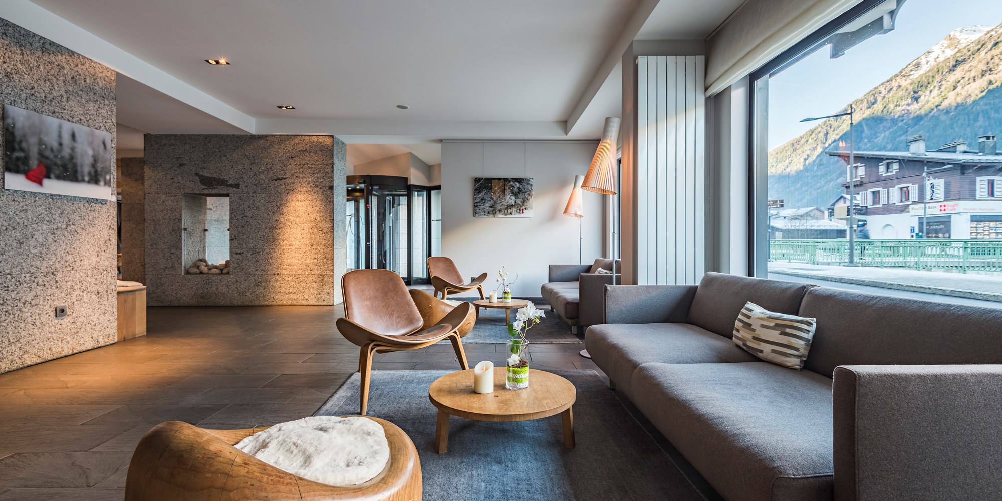 Le Morgane is Scandinavian themed boutique hotel, ideally located in the heart of Chamonix, in a quite street near the Aiguille du Midi cable car. It is just 70 meters to the Aiguille du Midi cable car station, and beside the l’Arve river. The hotel also provides private shuttles to the slopes and the town. Le Morgane is a sophisticated hotel which offers peace and tranquillity in every corner. There is a strong Scandinavian influence throughout the hotel which is evidenced by the minimalist layout, the use of natural materials as well as natural light which works so very well when surrounded by the majestic alpine scenery.
